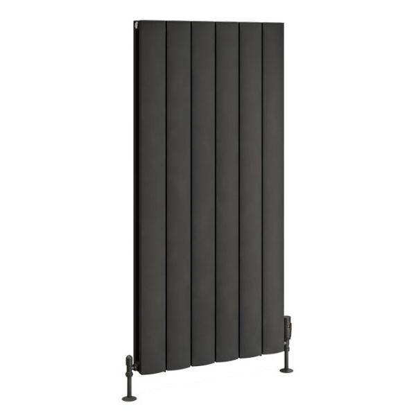 The Eastbrook Guardia radiator range can be fitted to show the flat side or the curved profile of the panels, allowing the radiator to fit seamlessly into your space. Available in a matt anthracite finish, this model is 1200mm high and 565mm wide, constructed from 12 sections. Made from aluminium, the Eastbrook Guardia radiators ensure rapid heating, effortless installation and transportation due to their lightweight design, all while providing exceptional corrosion resistance.