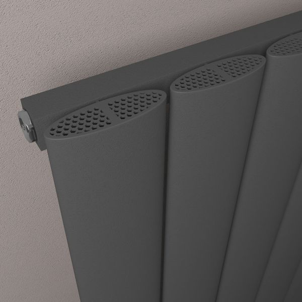 The Eastbrook Malmesbury radiator range features attractive oval shaped bars. Available in a matt anthracite finish, this model is 1200mm high and 375mm wide, constructed from 4 sections. Made from aluminium, the Eastbrook Malmesbury radiators ensure rapid heating, effortless installation and transportation due to their lightweight design, all while providing exceptional corrosion resistance.