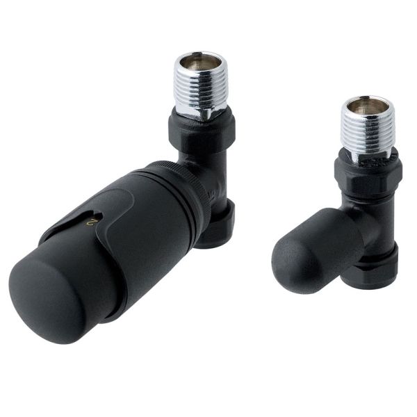 Eastbrook Matt Black Straight Thermostatic Radiator Valves