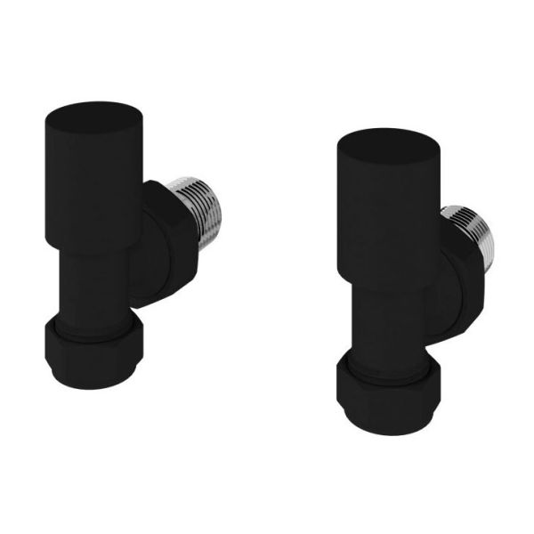 Rounded Matt Black 15mm Angled Manual Radiator Valves by Eastbrook