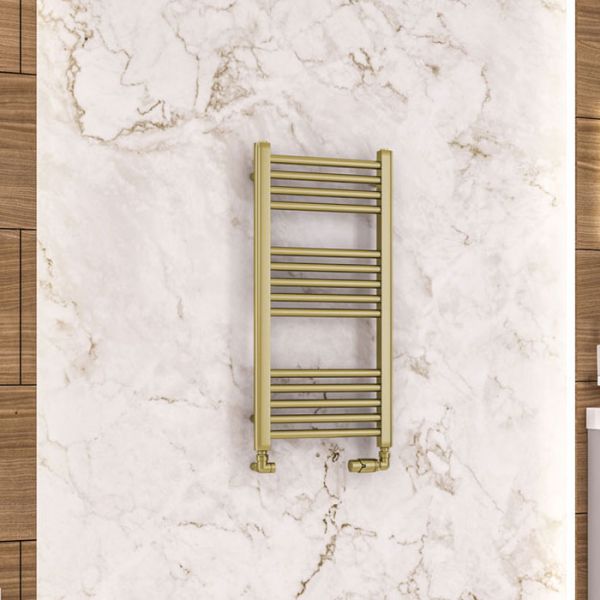 Wendover 800 x 400mm Brushed Brass Straight Towel Radiator by Eastbrook