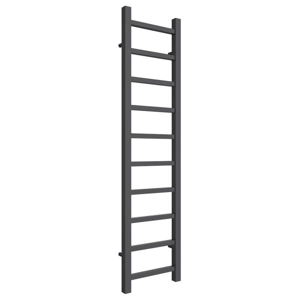 The Reina Serena is an anthracite designer towel rail, featuring sleek rectangular bars that deliver a minimalist and modern aesthetic.