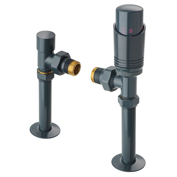 Cylindrical Anthracite Angled Thermostatic Radiator Valves by Terma