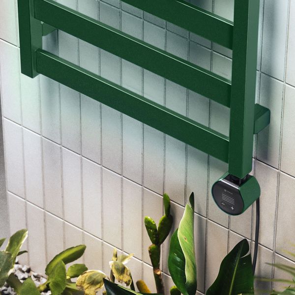The Vivo designer electric towel rail is supplied with the Terma VEO electric element. Basic control, such as adjusting the temperature and using a simple timer, can be managed via the front panel. VEO stands out from the competition when in use the Terma SMART app, it offers five room temperature settings (15 to 28 °C), a drying function, and a comprehensive 7-day timer. The VEO elements are compatible with Amazon Alexa, Google Assistant, and IFTTT. Additionally, they feature geo-location functionality: when you leave home, the devices reduce the temperature by approximately 3 to 4 degrees to save energy, and when you return, they revert to comfort mode.