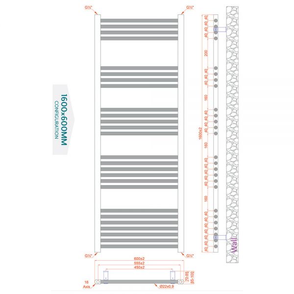 Towelrads Independent Chrome Towel Rail 1600 x 600mm