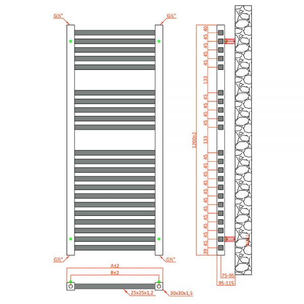 • Element is pre fitted on the right hand side (when looking at the towel rail) as standard